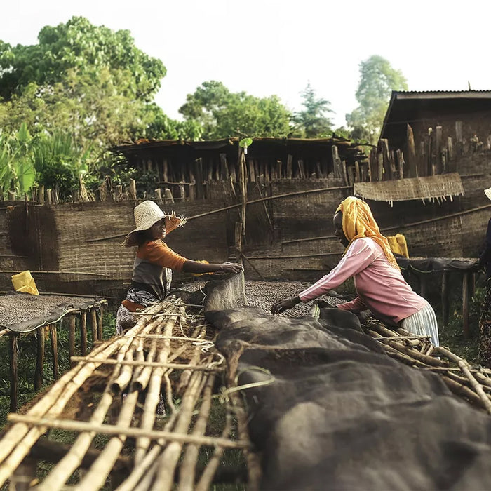 This lot is Ethiopia Landrace. Ethiopia has many thousands of indigenous coffee varieties, we've seen figures of between 6-10000. Some of these have names, there are indeed cultivars {Bourbon, 74110} & hybrid coffees {Ababuna} available. Ethiopian Landrace are coffees that have come from the coffee forests, these are domesticated, locally adapted traditional varieties.