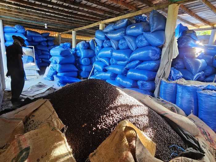 John is a third-generation coffee farmer. His family has worked this land for many years. John has been running the 10-hectare farm, Las Brisas for 15 years. He uses both traditional & modern production techniques & enjoys experimenting with new cultivars & processes. This coffee was processed using the natural method. After harvesting coffee cherries were floated to remove under/over-ripe cherries, sticks, leaves etc, dry fermented for 24 hours , wet fermented in large barrels for 80 hours then spread out to dry in a parabolic dryer until the moisture content reduced to 11%. The dried flesh was then mechanically removed.